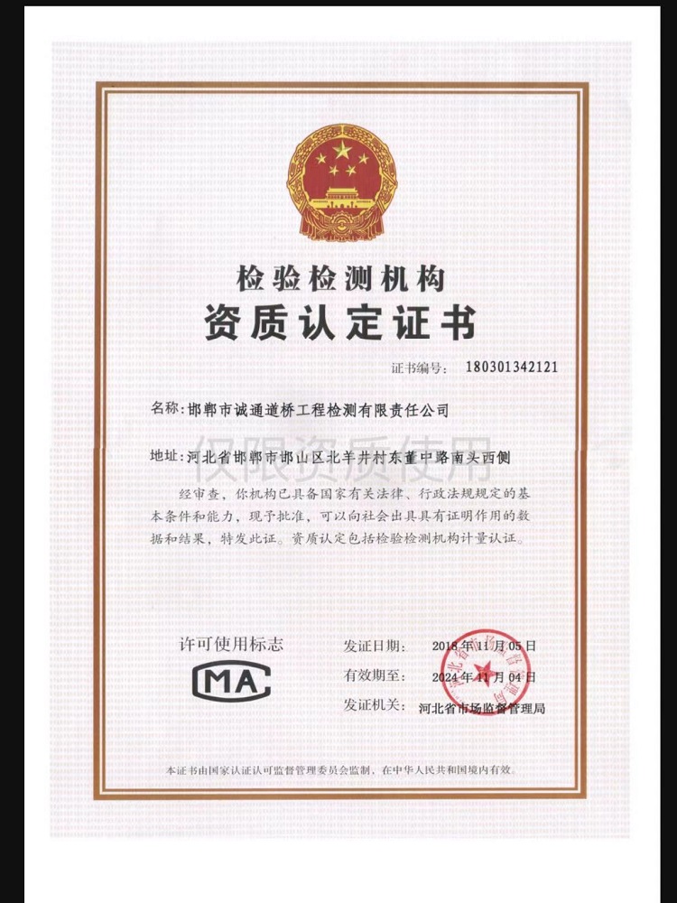 12月30日,河北高速恒質集團誠通檢測公司獲得公路工程試驗檢測甲級資質,標志著恒...